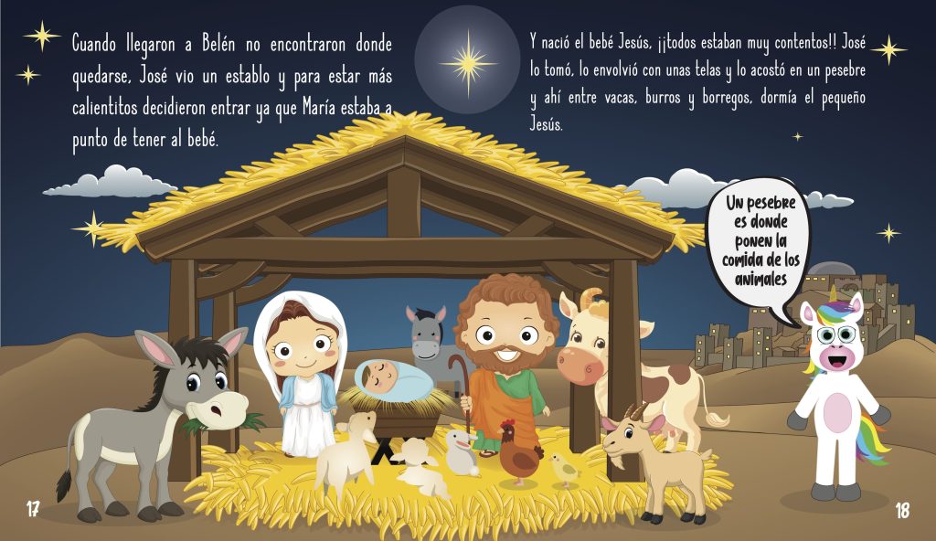Este cuento relata el nacimiento de Jesús en Belén, rodeado de pastores y ángeles. Es una historia que transmite la idea de que Jesús es el salvador del mundo y que su nacimiento es motivo de alegría y esperanza para todos los cristianos.