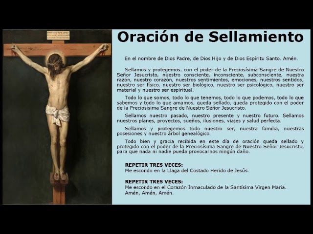 La oración de sellamiento con la sangre de Cristo es una oración que se utiliza en la tradición católica para pedir protección y sellar nuestras vidas con la sangre de Cristo. Esta oración se utiliza como una herramienta espiritual para protegernos del mal y de las fuerzas negativas que pueden afectar nuestra vida diaria.