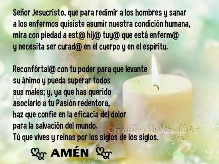 Cuando un ser querido está enfermo, es natural sentirse preocupado y querer hacer algo para ayudar. Una oración por la salud de un enfermo puede ser una forma poderosa de enviar energía positiva y amor al ser querido que está luchando contra la enfermedad. En este artículo, exploraremos algunas oraciones que puedes utilizar para pedir por la salud de un enfermo.